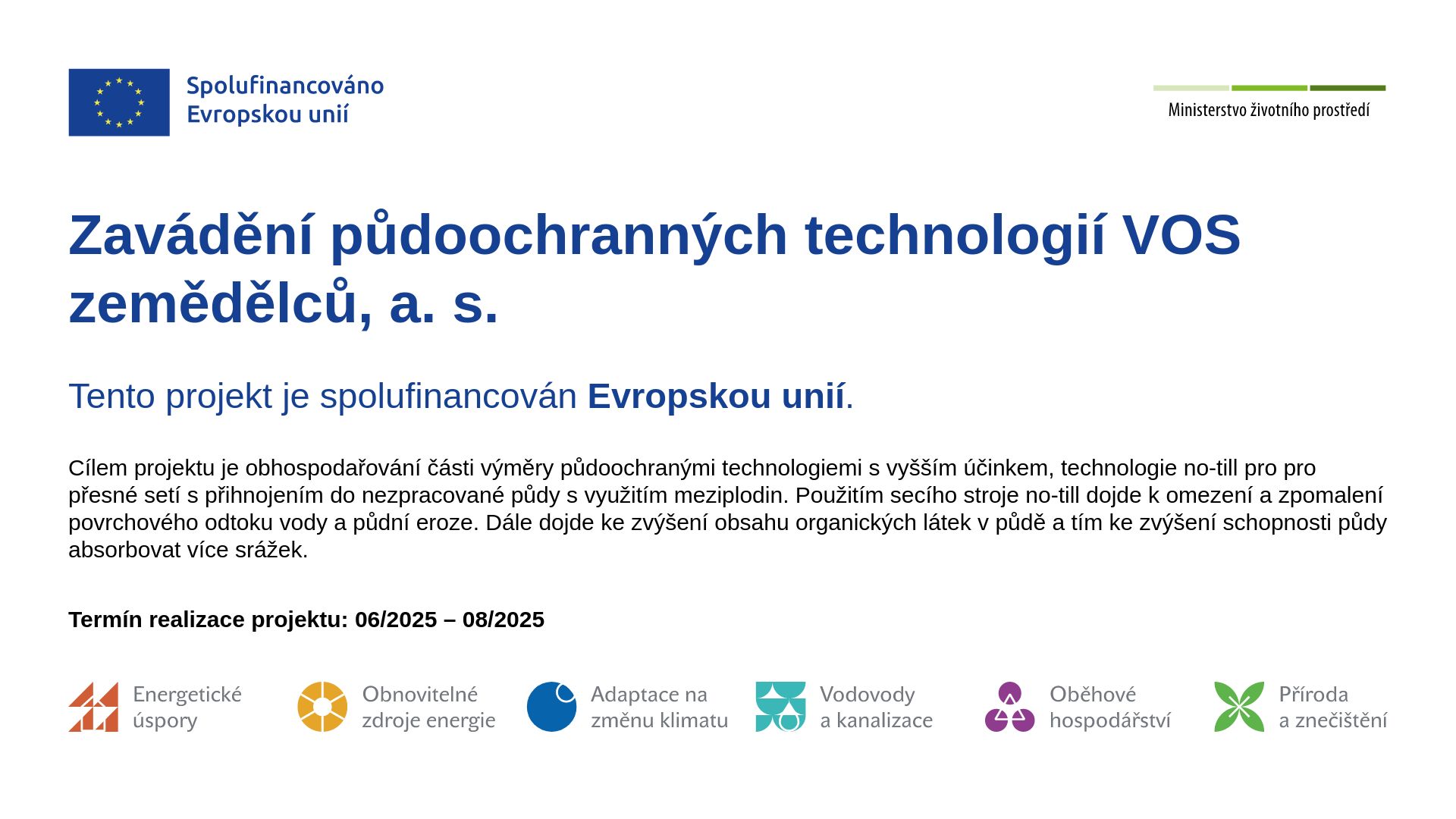 Zavádění půdoochraných technologií VOS zemědělců, a.s.